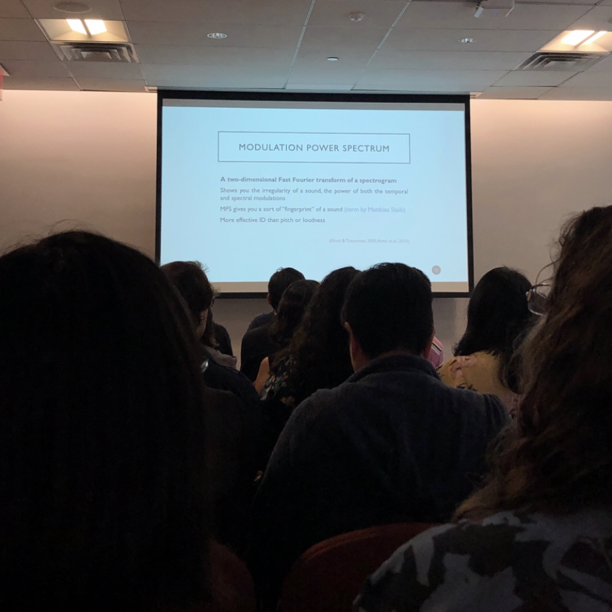There were a variety of initiatives for students at the conference, which I thought was a nice way to try and integrate relative newcomers into the field and encourage them to converse with more senior researchers. These activities ranged from a bingo game that encouraged conversation at the opening reception, to an opportunity for students to go for lunch with an academic of their choice, to several lunchtime panel discussions. I served on a panel about applying to graduate school, and it was great to see so many enthusiastic students, many of who were still undergraduates, attending this session and expressing a keen interest in becoming researchers in our field. In particular, one undergraduate student whom I talked to individually said she did not know anyone else at the conference, but was surprised by how essentially everyone she had met at SMPC had been extremely welcoming and helpful. I told her this is certainly not something that can be said about every academic field, and I am indeed very lucky and proud to be working in a field where colleagues are generally very open to new ideas from new people who are keen to become the next generation of music science researchers.